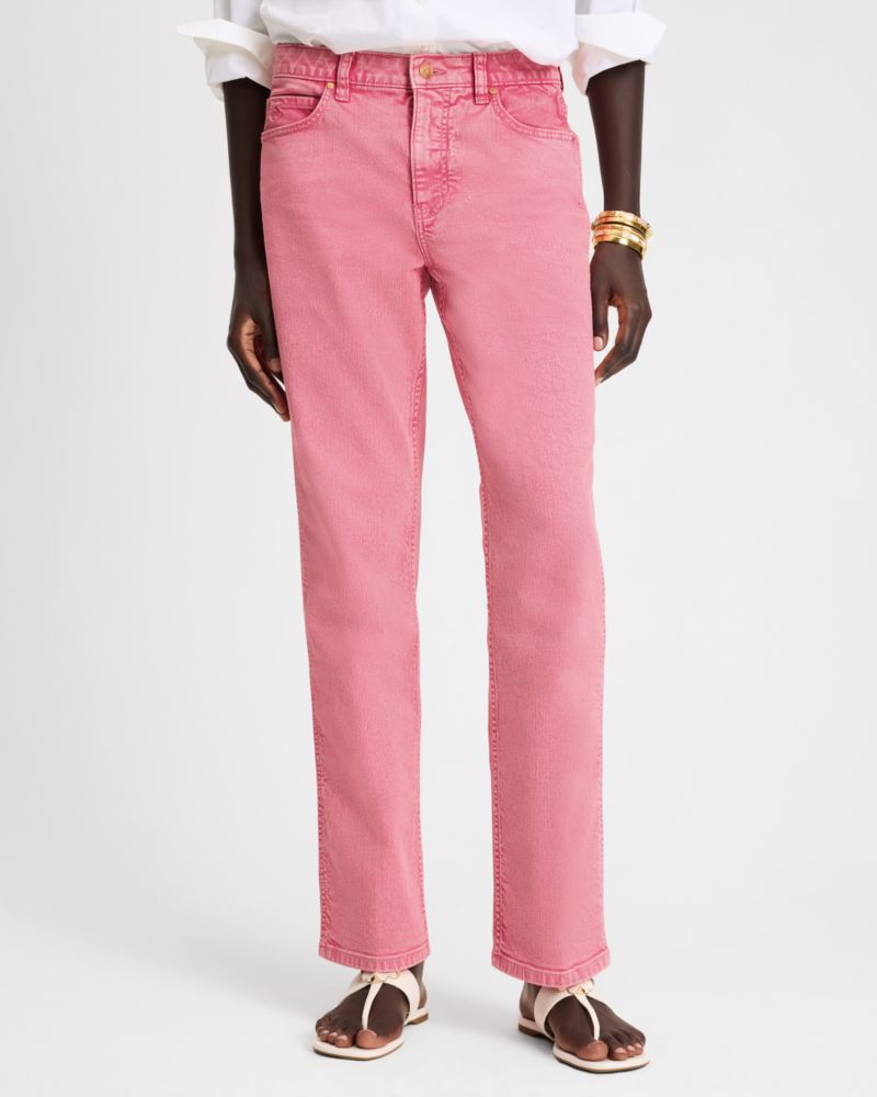 You can't go wrong with this classic pair of pants: they're designed for a flattering straight-leg silhouette in our Pizzazz Pink acid wash denim.