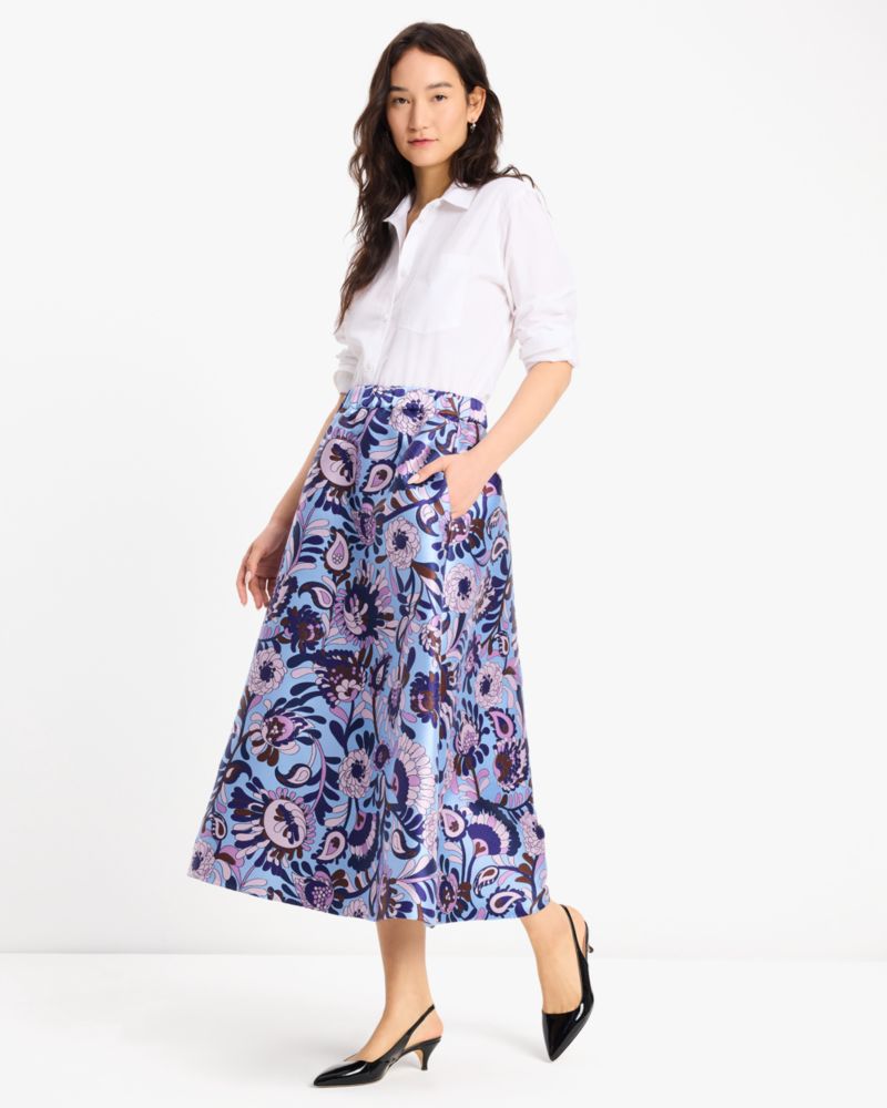 Add a bold pop of color to your look with this elegant midi skirt—it's made from our Autumn Paisley print brocade.