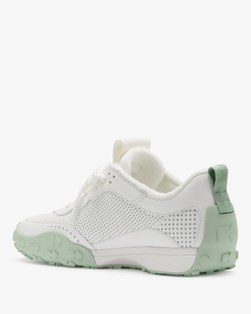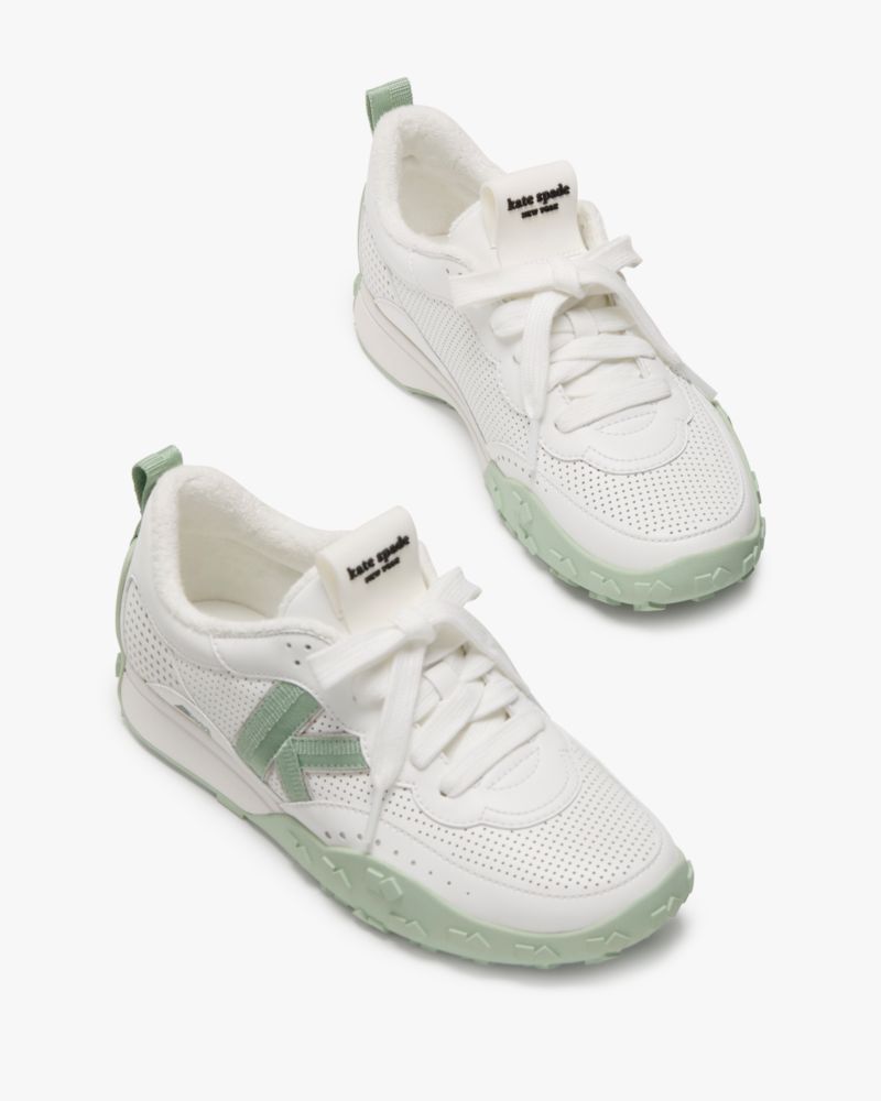 Statement shoes are always a yes. Our latest pair of designer sneakers are made from mesh-trimmed perforated leather with our signature K logo. These women's sneakers are comfortable, durable *and* stylish: no wonder they’re everyone’s favorite! Our K as in Kate Sneakers feature soft, cushioned soles so you can walk anywhere and everywhere. They complement casual, everyday looks and add a sporty chic vibe to your dressier looks, too. With so many colors and prints to choose from, there's a perfect pair for everyone—white sneakers, color-blocked sneakers, dress sneakers with a fun pop of print...