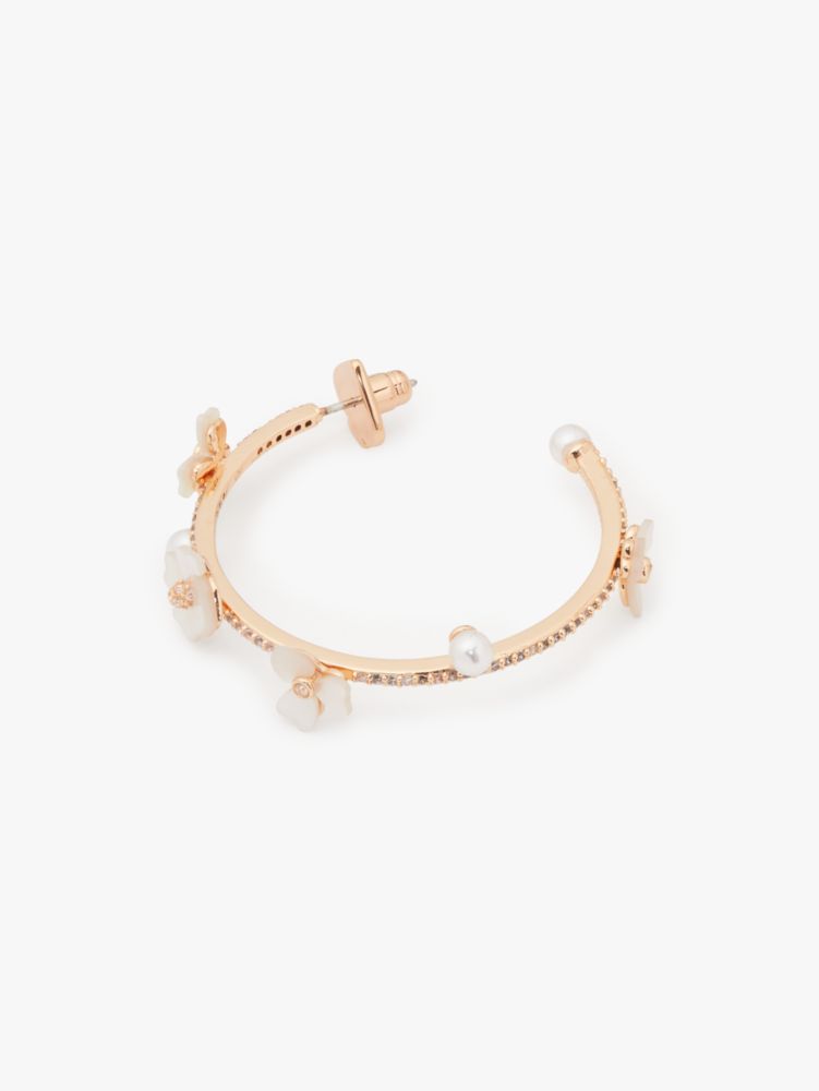 Kate Spade,Precious Pansy Scatter Hoops,Hoops,Shell,Cubic Zirconia,Mother of Pearl,Acrylic,Pearl,Floral Embellishment,Gem ...,White